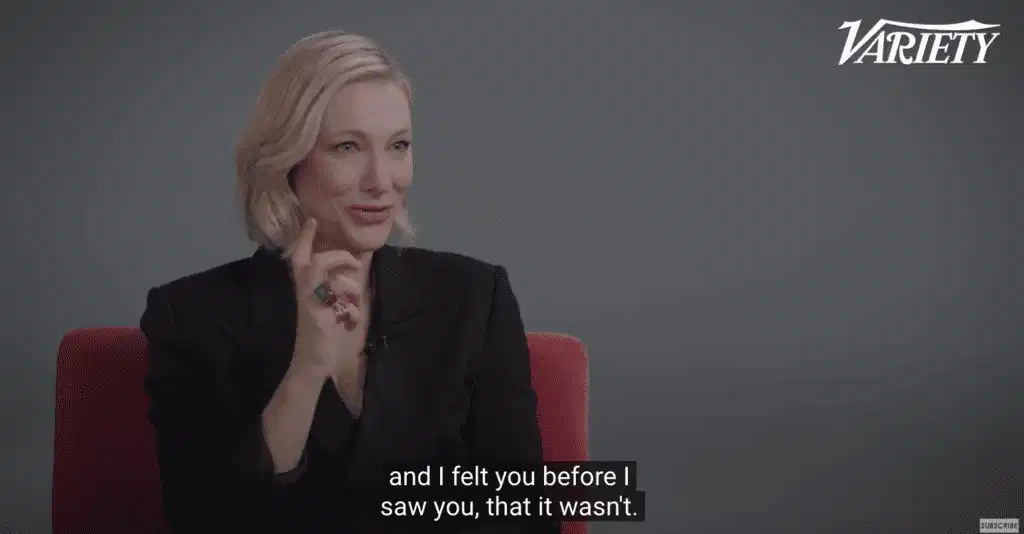 接著楊紫瓊對凱特·布蘭琪說:「但,我的天啊,看看妳,就像是發光的一樣。有一種特別的光芒在妳身上,好像背後有人幫妳打光一樣。」