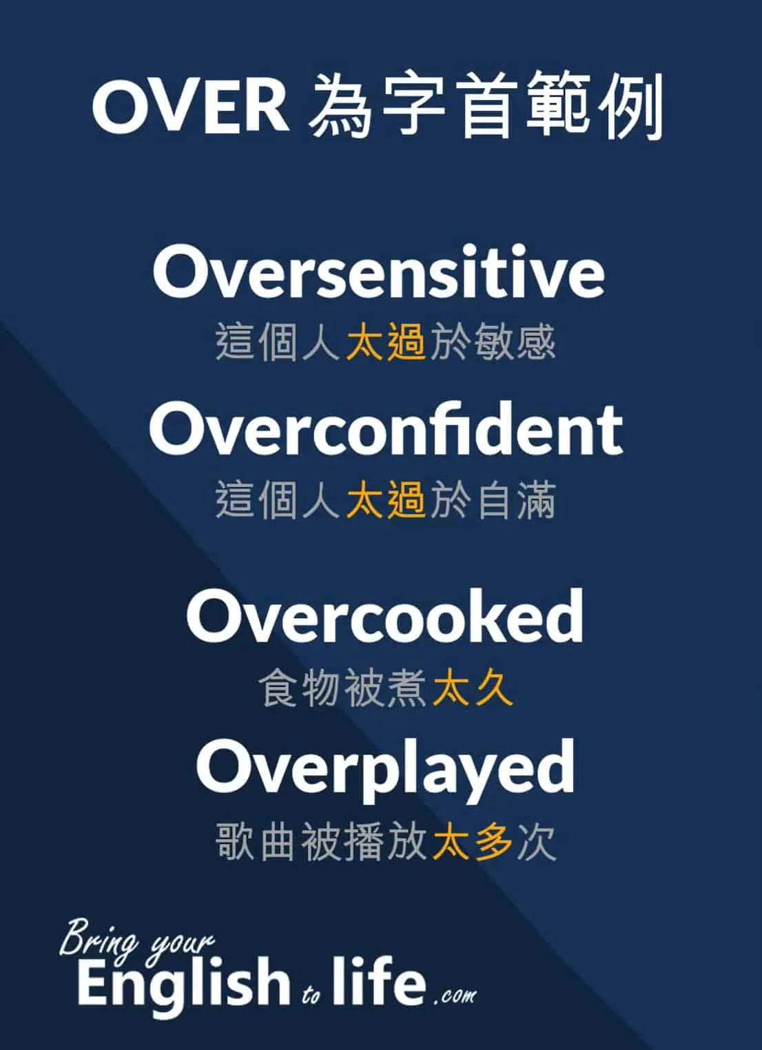 今天的文章與影片,除了提醒大家不要習慣說「太 OVER」,我還會示範較合適的表達方式。接下來,我們會討論「OVER」這個英文字首,以及一個英文習慣用語的歷史。