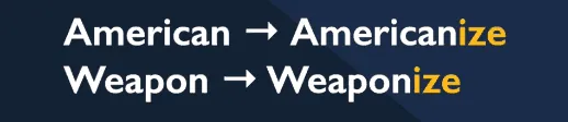 應用: Politicize(使政治化)、Globalize(使全球化)、Modernize(使現代化)。