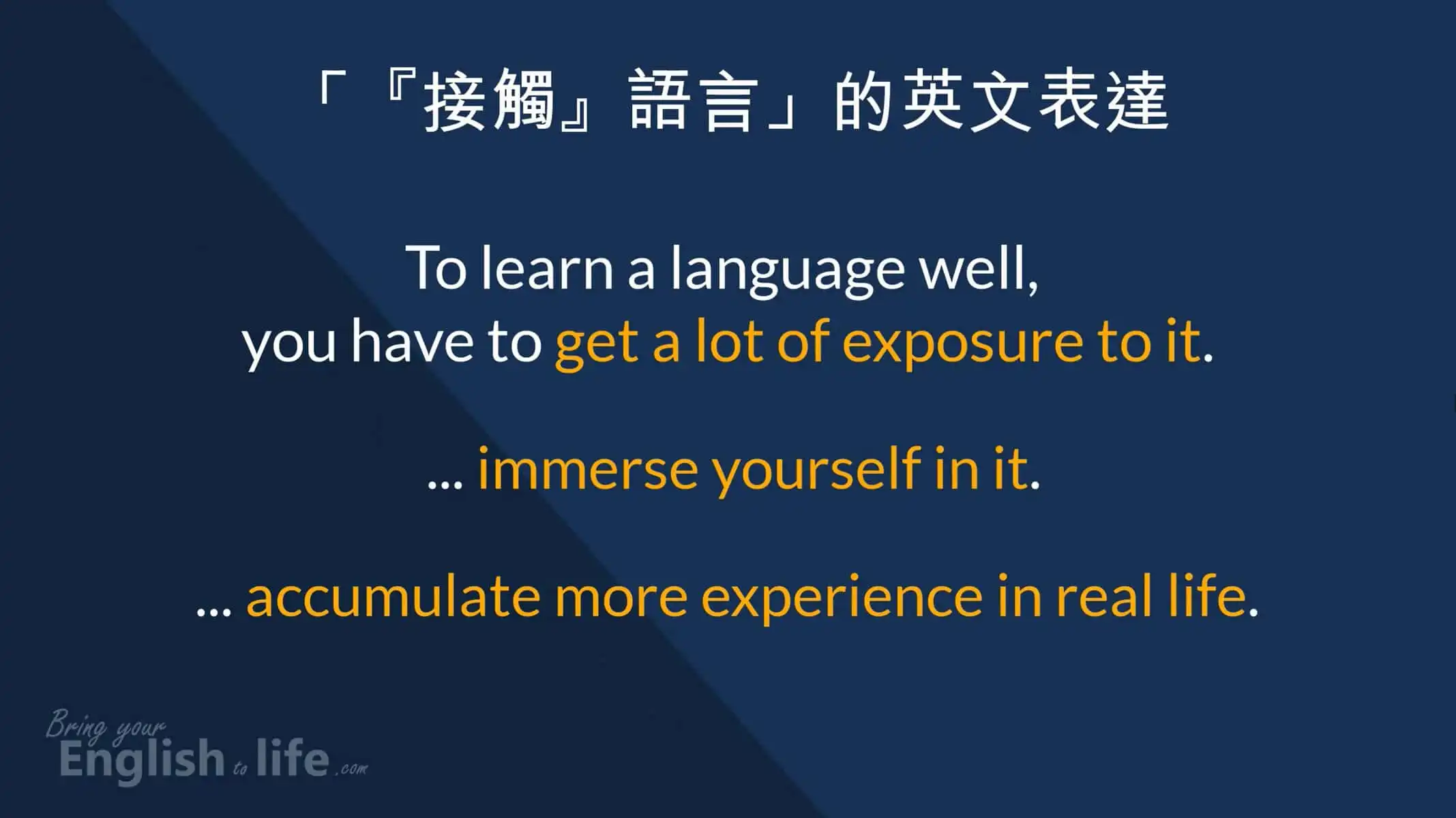 但是英文的接觸通常是需要兩個表面實際碰到,因此若要運用英文表達「接觸」一個語言這個想法,我們就不能直接翻譯成 “contact“ 。