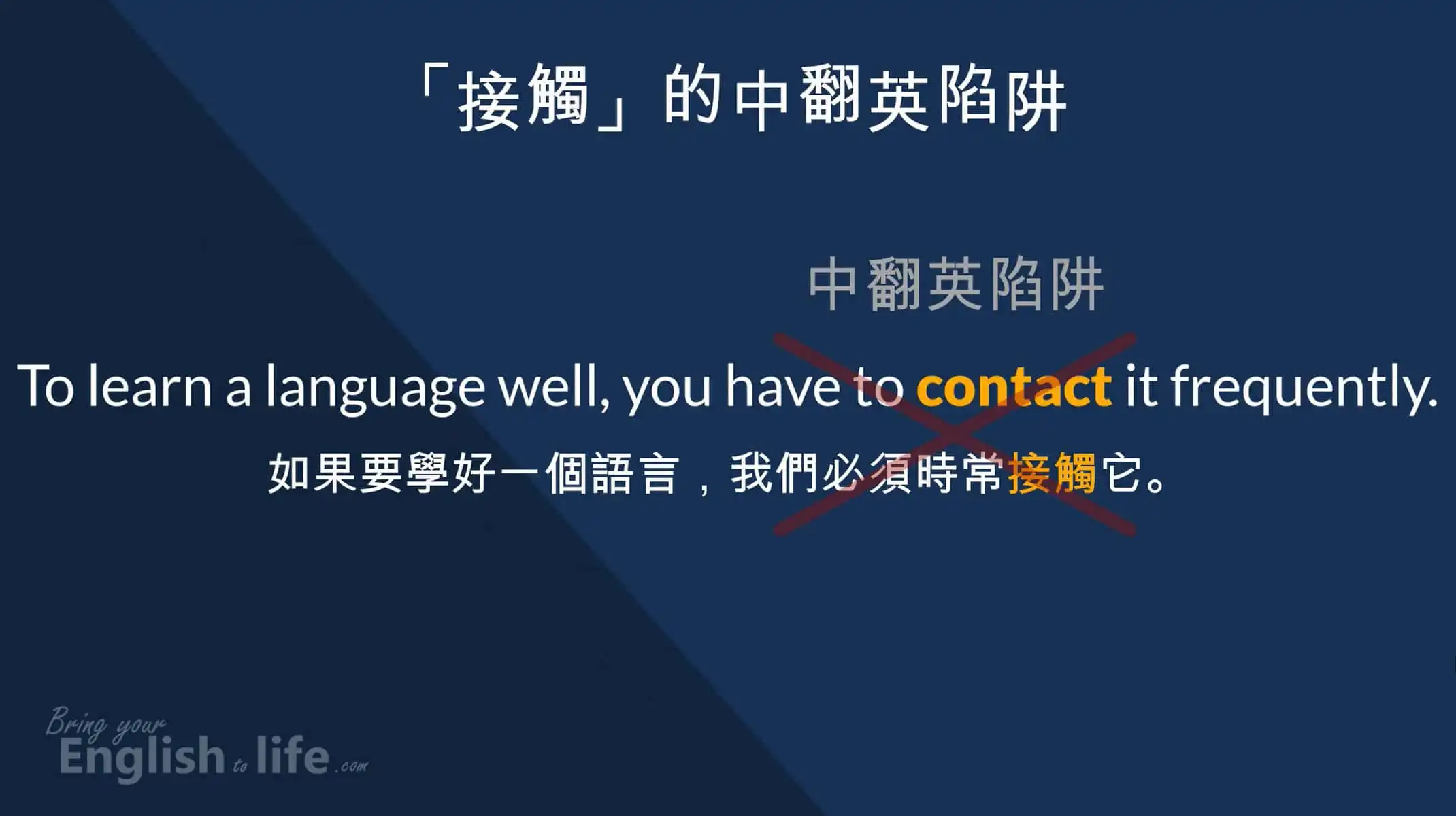 特別要注意中翻英陷阱:在英文中的 “contact” 表達,與中文中的「接觸」有很大的表達差別。