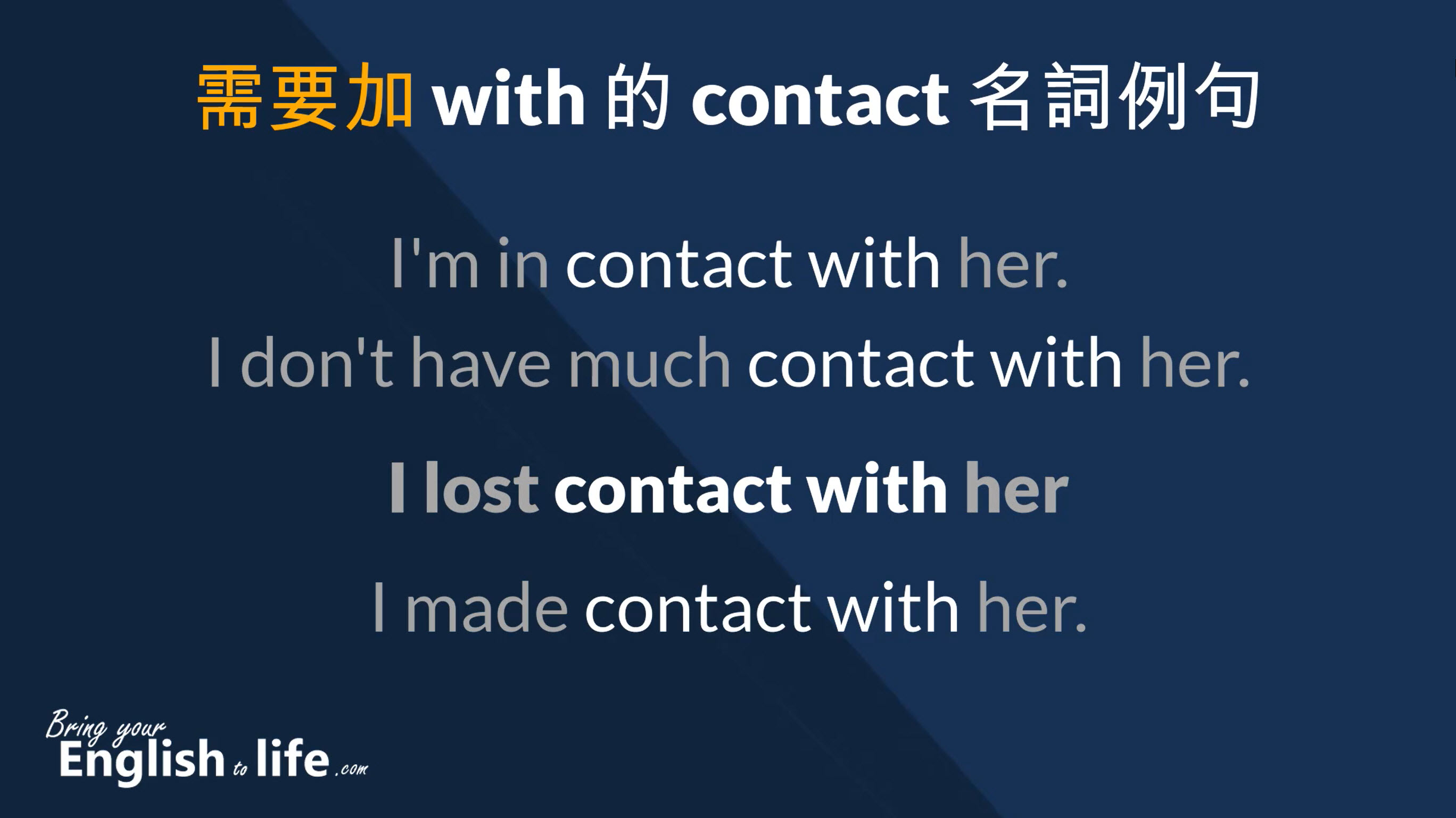 (影片 02:04~) 四個 contact + with 例句