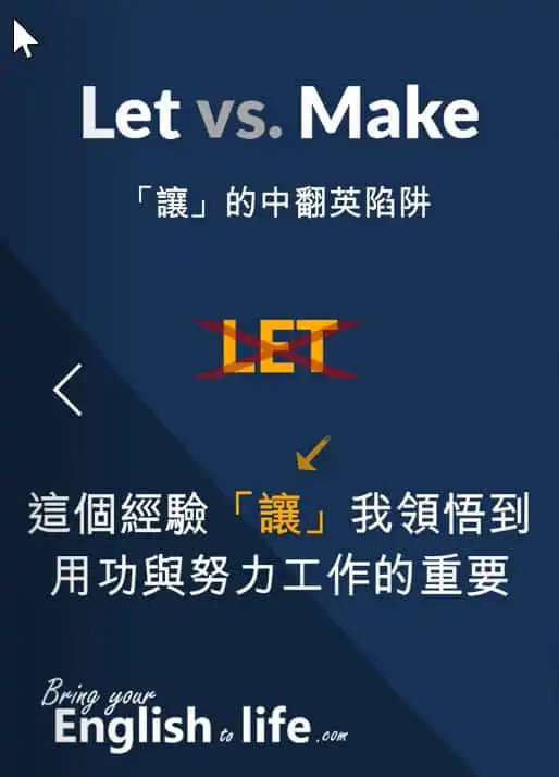 讓的英文單字 “Make” 與 “Let” 是兩個經常被混淆的詞彙。在日常生活中,我們可以從涉及這兩個單字的英文句子中觀察到「中翻英」的陷阱。