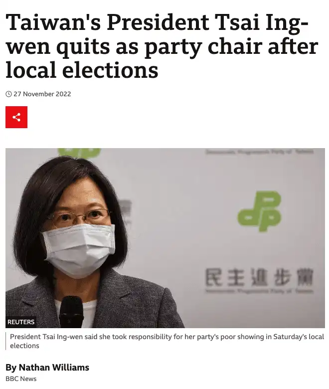 這集的英文學習 Podcast 從 BBC 的一篇文章選出一個關於台灣九合一選舉 (2022年11月26日)的描述。
