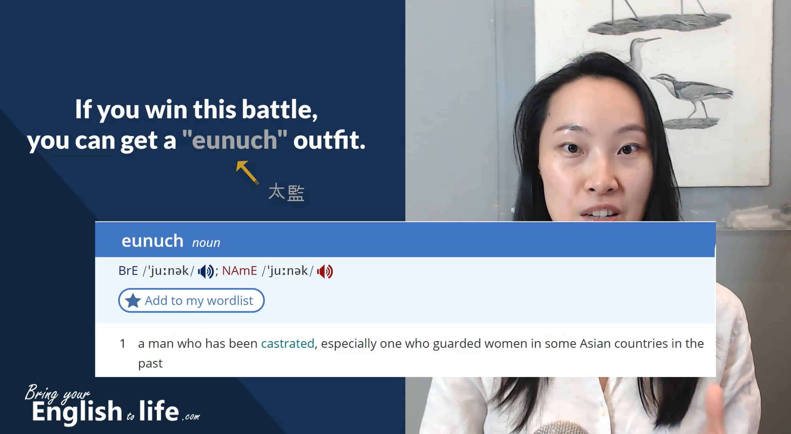 學習如何在句子中使用 eunuch 華麗、精準的表達: