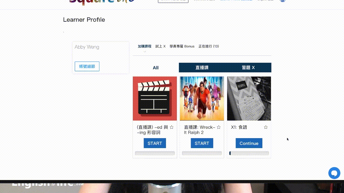 我的 Square One 英文基礎課程裡的延伸教材 Square One X1 習題 X 第一季(影片 03:18~),它的主題是 BBC 的一個食譜,透過 Abby 針對這個食譜所出的練習題,學員能有效的練習與回顧 Square One 英文基礎課程,就像是與 Abby 一起讀這份食譜一樣。