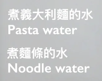 了解西方飲食文化和用詞後,我們可以開始推論「麵湯」的英文表達方式。現在我們知道「煮義大利麵的水」叫 pasta water (影片 01:23~),那麼我們從這個邏輯推回檢視「煮麵條的水」應該怎麼說呢?
