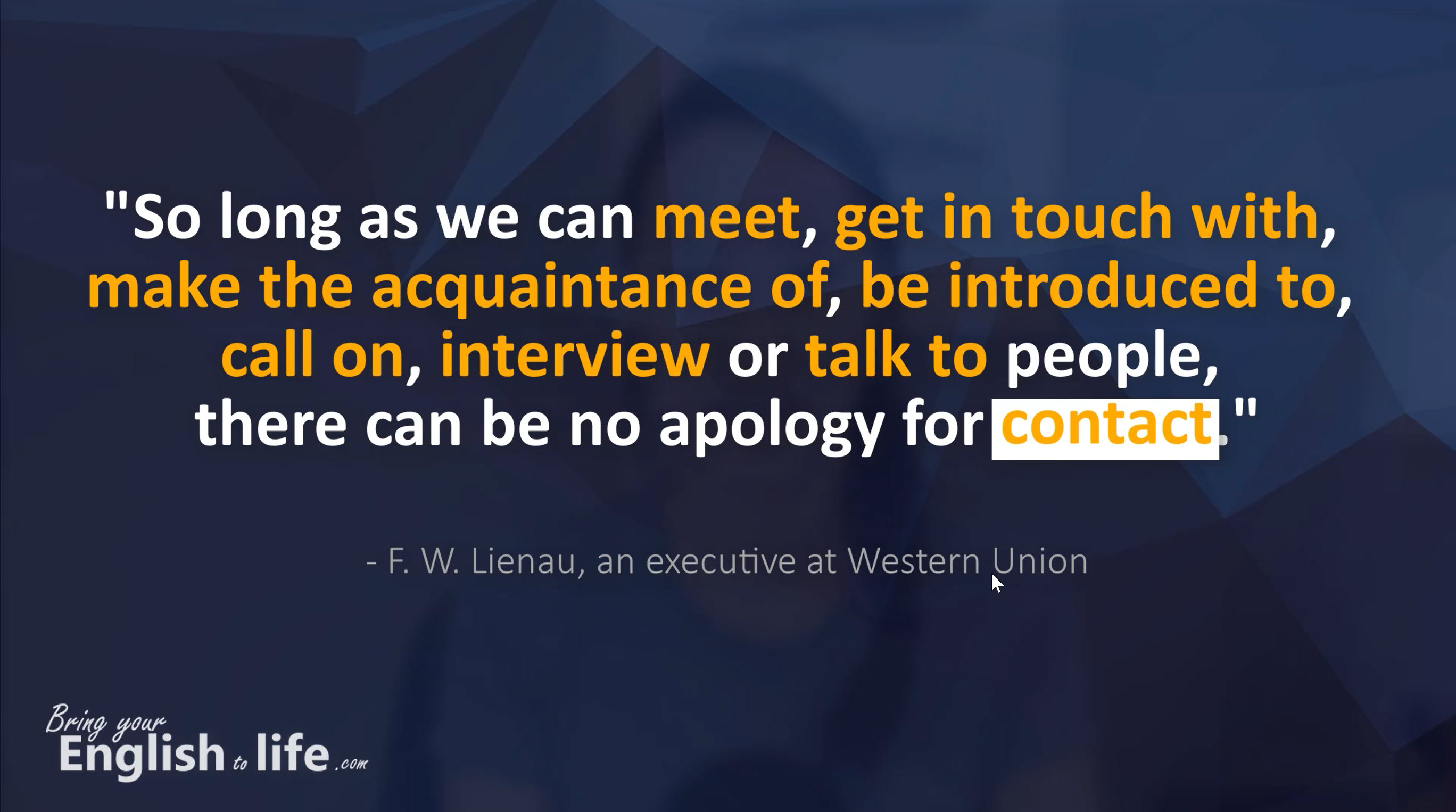 動詞 contact 的使用,曾經受到某些英文母語者鄙視,尤其是當時的高知識份子。主要,他們認為「contact 動詞的使用」無法具體表達,這種模糊的說法是不禮貌的。從 contact 的英文單字歷史,我們更能驗證語言的彈性,說明「活化英文」的重要性。