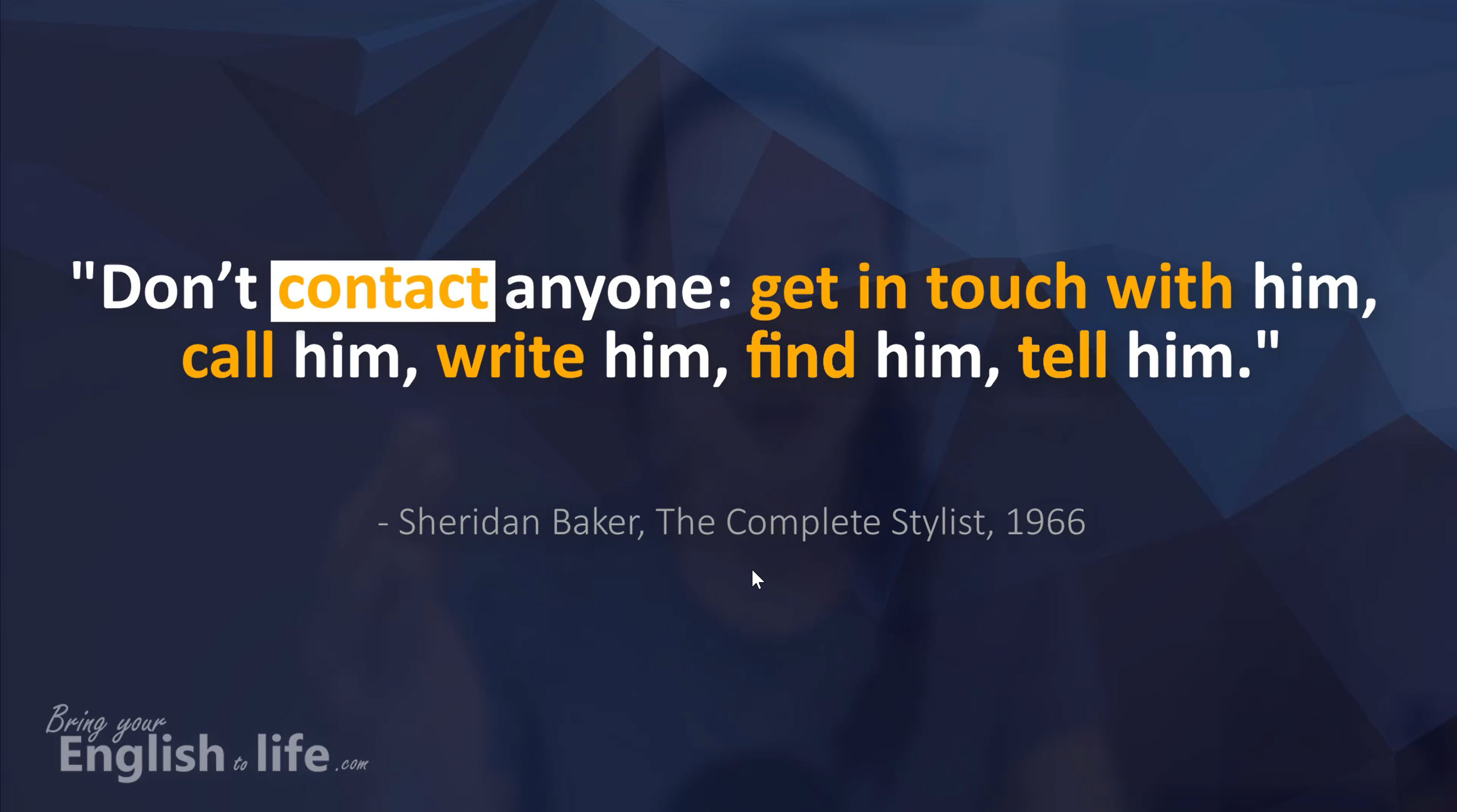 到 20 世紀,contact 的動詞開始大量在商業上被使用,許多人對於「contact 動詞的使用」感到反感,特別是教育程度較高的人,非常排斥這樣的用法。