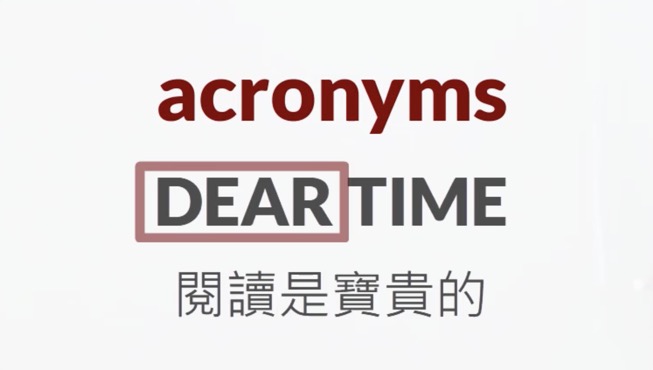 另一個延伸的優點是以「DEAR Time」為例,其中的「DEAR」不僅是一個縮寫,也是一個我們熟悉的英文單字,具有「珍貴的」、「寶貴的」意思。