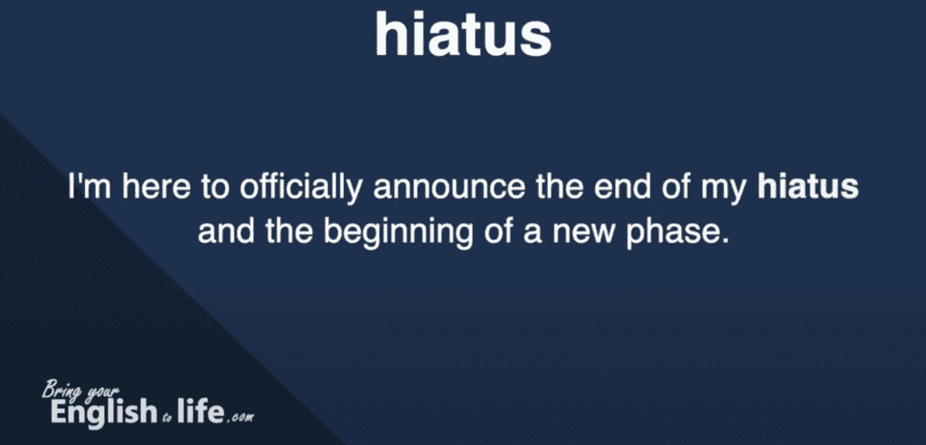 透過這個單字的學習,我正式宣布我的 YouTube 頻道 – 活化英文 Bring Your English to Life! 的重啟!接下來的文章,我將解釋 hiatus 這個單字的中文意思、發音,更進一步用幾個例句,解說 hiatus 在什麼情境下的各種生活應用,相信大家會能透過這次的學習開始將這個單字納入自己平時的語言資料庫!