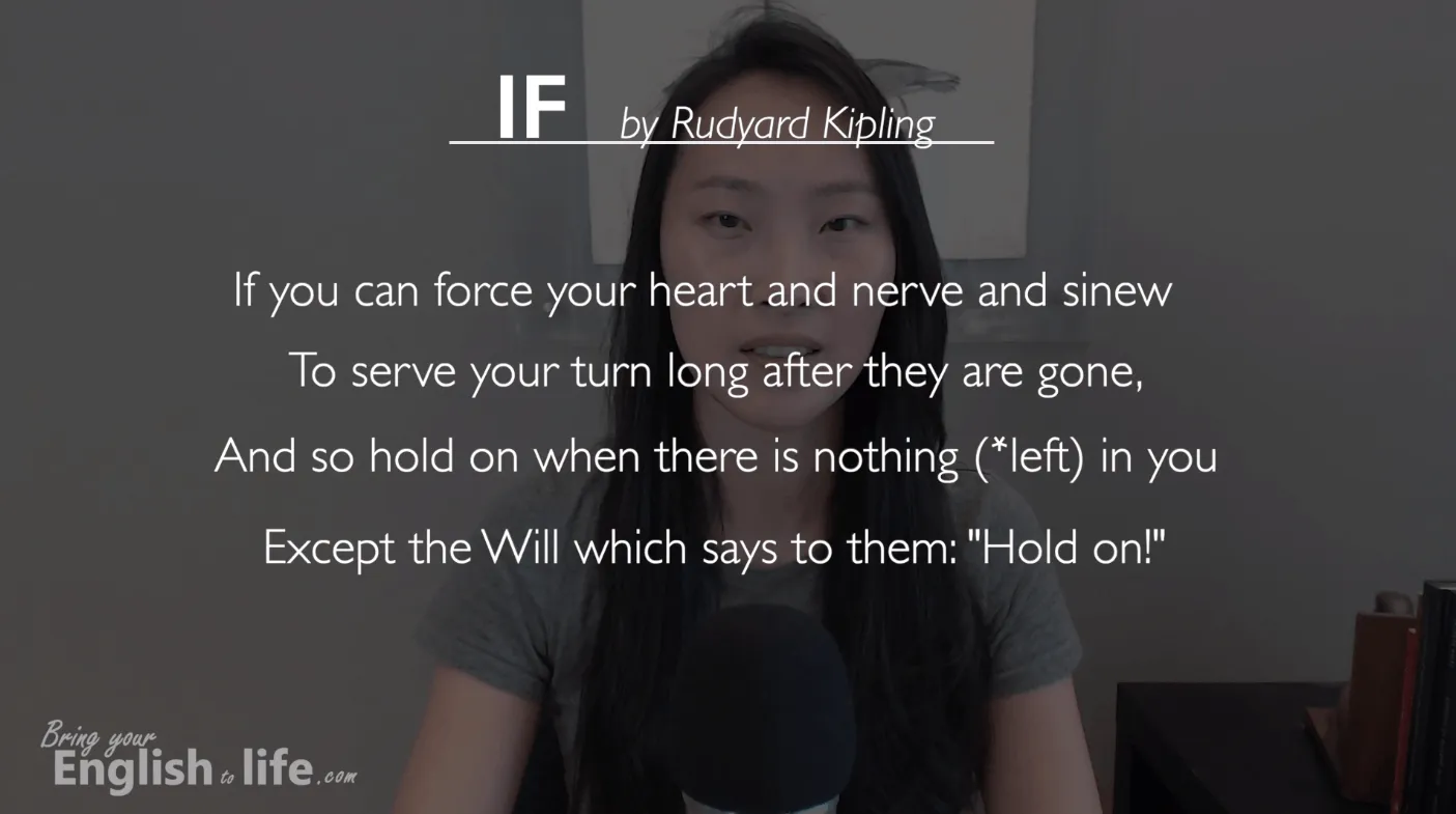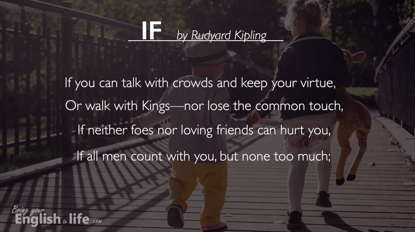 I’m going to recite for you a poem that means the world to me. I grew up with this poem, and to this day, I still live by its principles. The poem is called “If” by Rudyard Kipling.