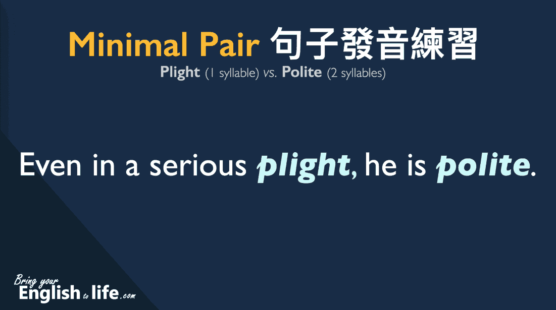 即然 plight 和 polite 發音這麼的相似,讓我們來分析它們的差異 (影片 01:51~):