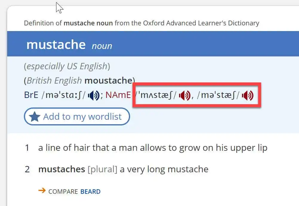 透過今天的 mustache (鬍子) 的「重音」實例教學 ,我們可以練習不同的重音發音位置,進而理解重音位置不同對於一個字所造成的實質影響 (影片 01:19~) 。剛好這個字有兩種重音的分佈,兩者都是正確的,並常被使用的。