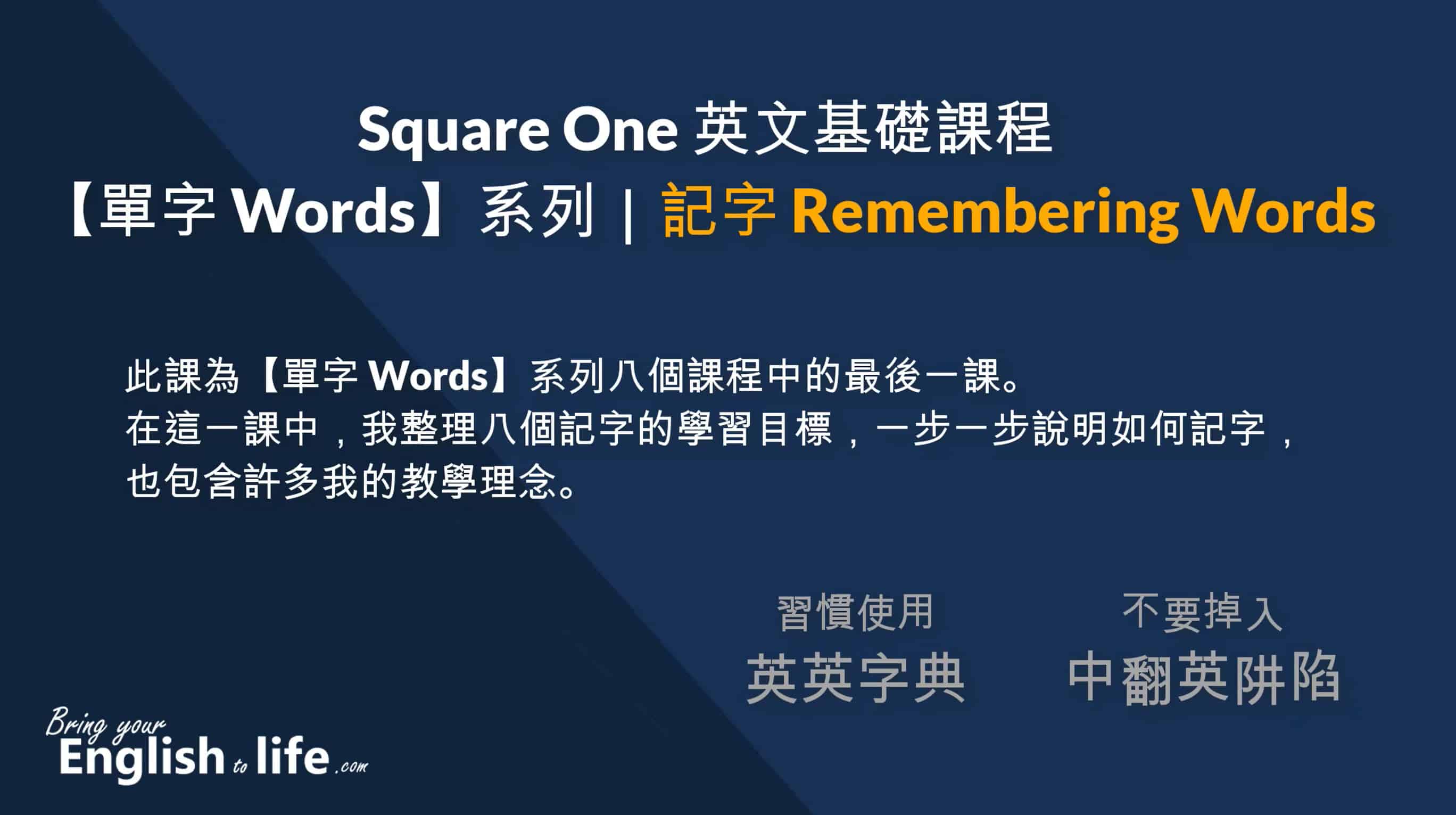 (影片 02:00~) 在我的 Square One 英文基礎課程,【單字 Words】系列的最後一課 – 〔記字 Remembering Words〕中,我時常在不同 Youtube 影片中提起這一課。因為這一課提及許多英文記字很重要的概念。而其中一個,是與今天主題相關的記字重點:
