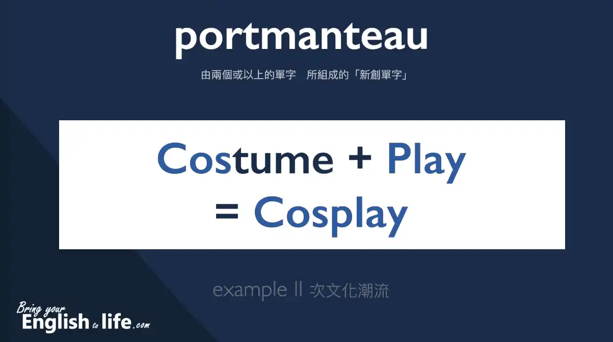 ๅคงๅฎถๆ่ฉฒ้ๅธธ็ๆ้ไธๅ portmanteau ๅฎๅญ (ๅฝฑ็ 01:42~)๏ผ cosplay ็ฑ costume ่ play ็ตๅ่ๆใ