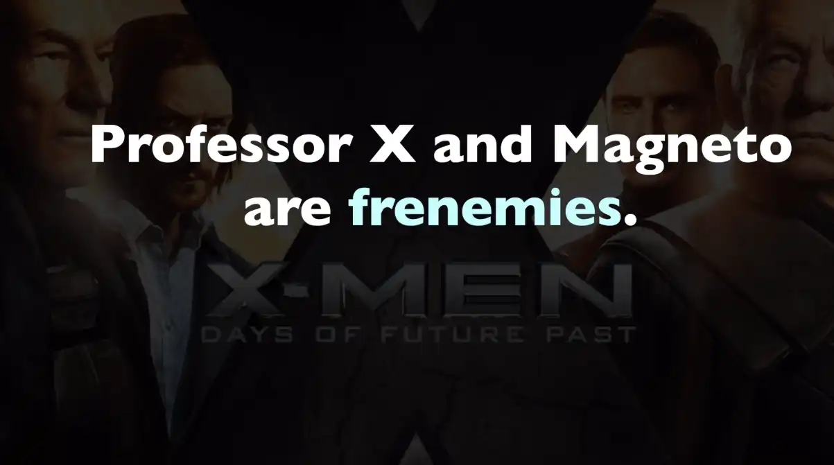 ๆ็้ X-MEN ( X ๆฐ่ญฆ) ็ๆๅ๏ผๆ่ฉฒ็ๆ frenemy ็ๆ ๆณ๏ผๅ ถไธญ Professor X ( X ๆๆ) ่ Magneto (่ฌ็ฃ็) ้ๅ ฉๅ่ง่ฒไน้็้ไฟ๏ผๅฐฑๆฏไธๅ็ถๅ ธไปฃ่กจ frenemy ็ๆ ่ชผใ