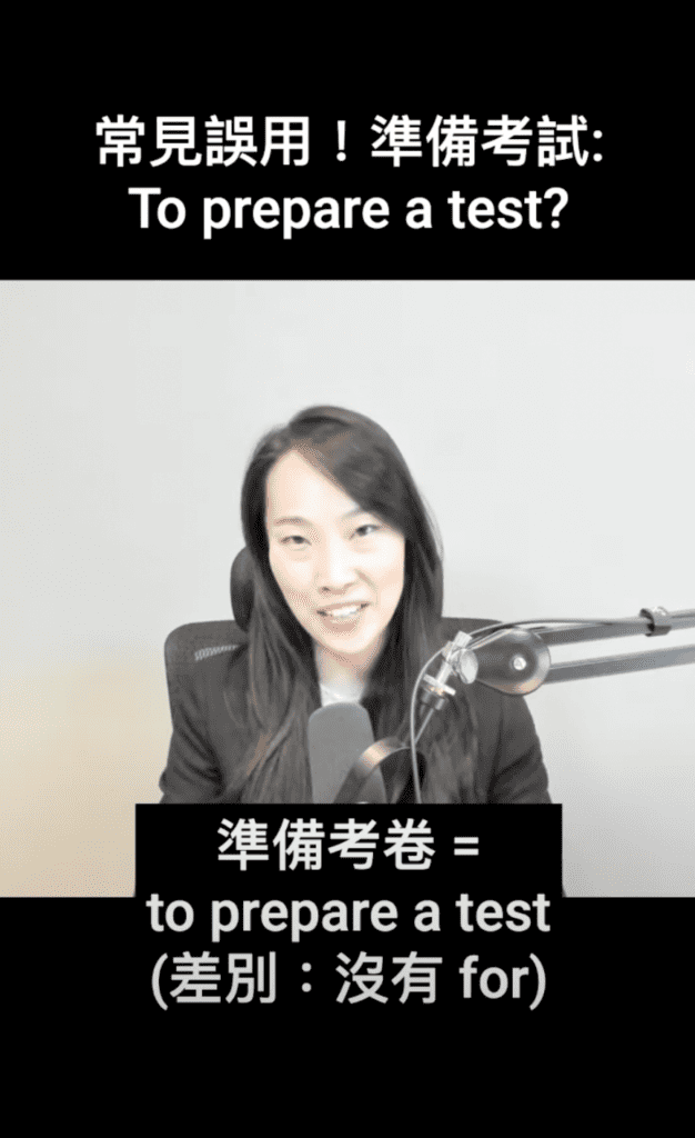 許多人直接中翻英「準備考試」而寫出 to prepare a test,這也是準備考試沒錯,文法是完全正確的,但是傳達的意思不一樣,指的是另一種層面的準備喔!