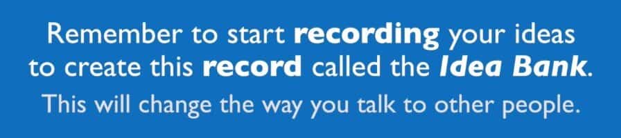 Remember to start recording your ideas to create this record called the Idea Bank. This will change the way you talk to other people.