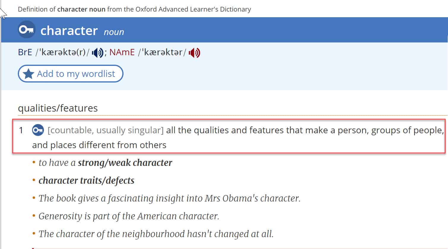 在例句中 “Character” 是一個特定的人,而 “Role” 是這個角色、這個特定的人在劇中,所扮演的一個身份,或是與其他人互動的關系,這個「角色」就是用 “Role” 這個字。我們要特別小心,在使用英文的時候,不要直接把中文翻成英文,在我專門為英文初學者設計的 Square One 英文基礎課程 中有更深入的說明如何學字。
