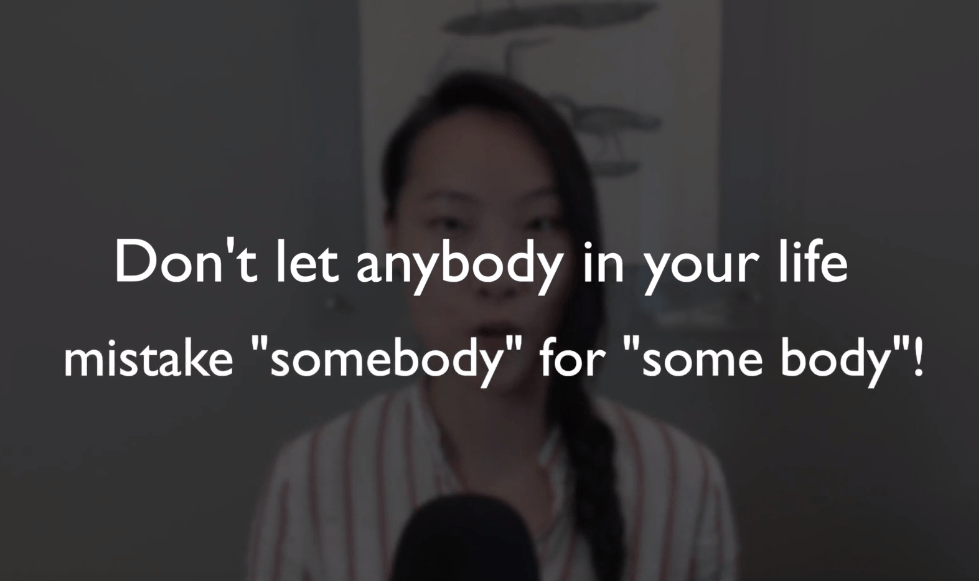 Don’t let anybody in your life mistake “somebody” for “some body”!