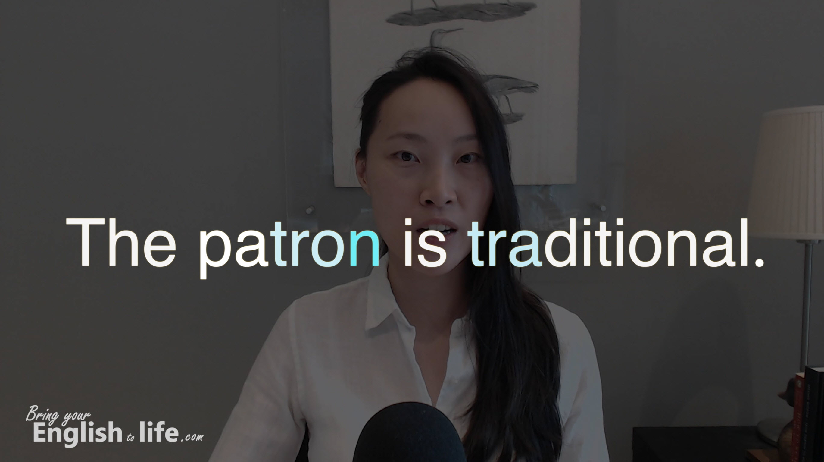 「patron」這個字的第二音節的聲音 (-tron),就是 traditional 第一音節常被誤唸時,出現多一個 n 的音,所以透過這個句子,可以練習發出有 n 的聲音,又緊接著發出沒有 n的組合,更容易分辨自己是不是順利將 traditional 發音正確,