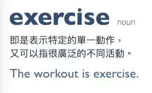 特別需要注意的一件事:名詞的 exercise 即可以表示特定的「單一動作」,也可以廣泛的指許多「不同活動」。